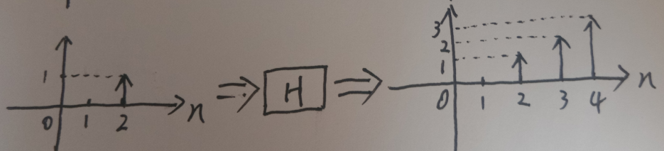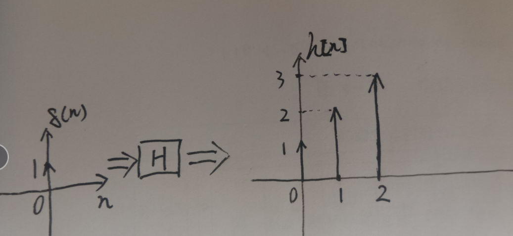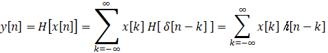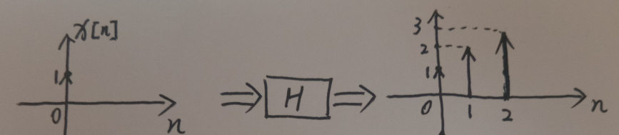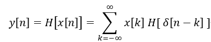 其中h[n]是系统H的冲击响应函数,h[n-k]是第n-k时刻对应的冲击响应值