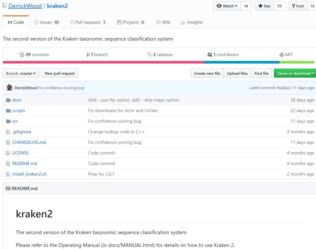 git clone git@github.com:DerrickWood/kraken2.git# 或wget下载并解压