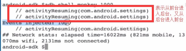 Monkey:在adb shell中,生成用户或系统的伪随机事件;
