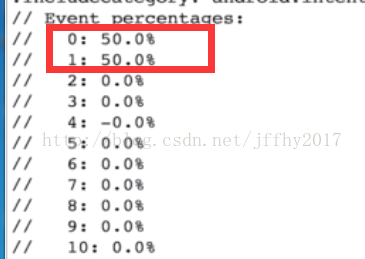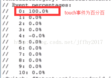 Adb shell monkey -v -p 包名 --pct-touch 100 99 占百分百的点击事件,完成99事件