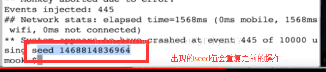 重现问题使用seed值:Adb shell monkey -p包名 -s 1468814836964 1000