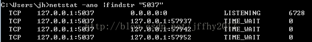 1)打开命令行,输入命令:netstat -ano |findstr "5037"