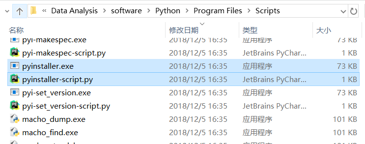 pyinstaller.exe和pyinstaller-script.py,待会要用到后者。