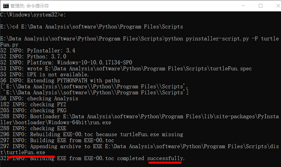 python pyinstaller-script.py -F turtleFun.py