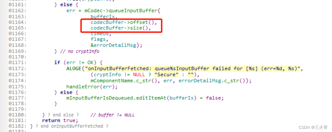 视频数据填充回调在视频编解码里面已经介绍了,详情请看android P MediaCodec编解码流程分析_三火哥的博客-CSDN博客_mediacodec解码流程 ,省略部分流程,从ACodecBufferChannel.cpp的mCallback-onInputBufferAvailable开始介绍。