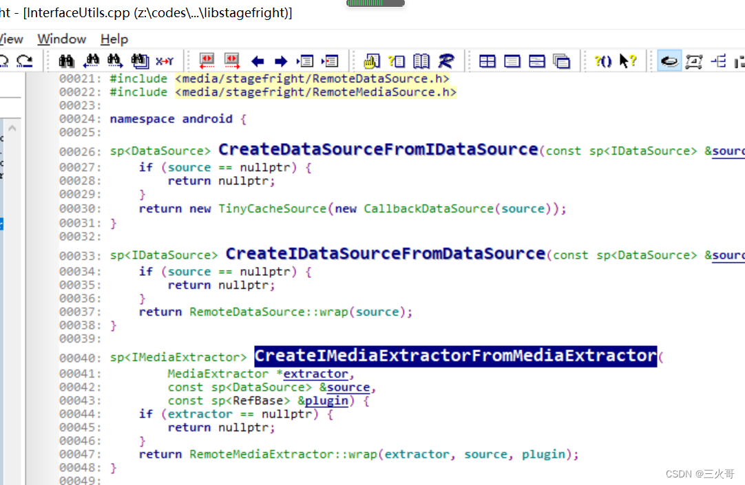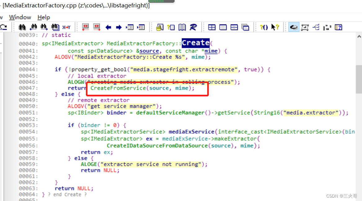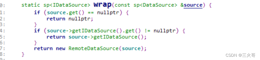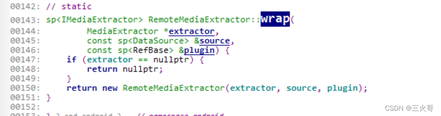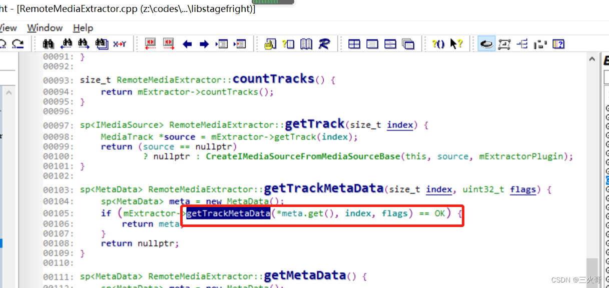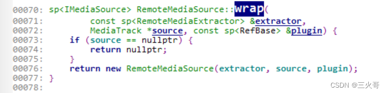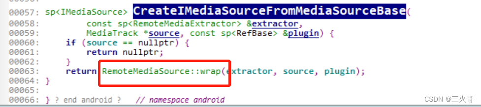 <6>. 通过5的分析可知,MediaExtractorFactory::Create(dataSource, NULL)最后拿到的对象是RemoteMediaExtractor,所以extractor就是RemoteMediaExtractor对象。在来看看sp<IMediaSource> track = extractor->getTrack(i);