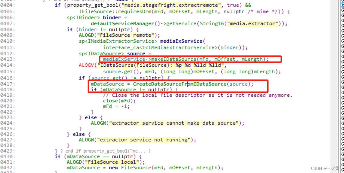<2>.在GenericSource::onPrepareAsync函数中,通过MediaExtractorService的makeIDataSource函数将MP4文件的音频和视频提取出来
