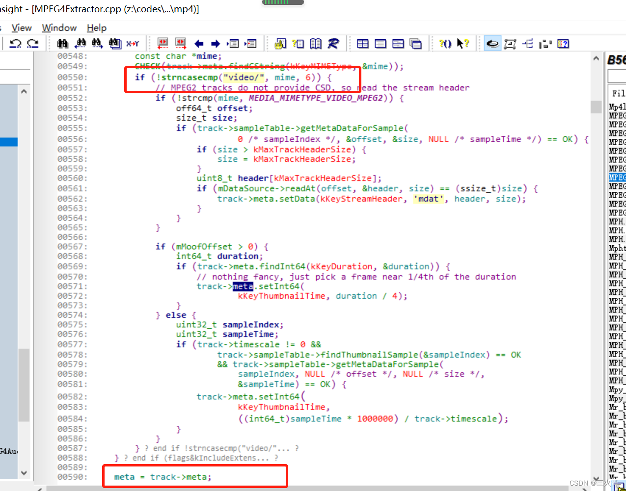 主要是通过meta->findCString(kKeyMIMEType, &mime)获取mime,然后通过mime来判断: