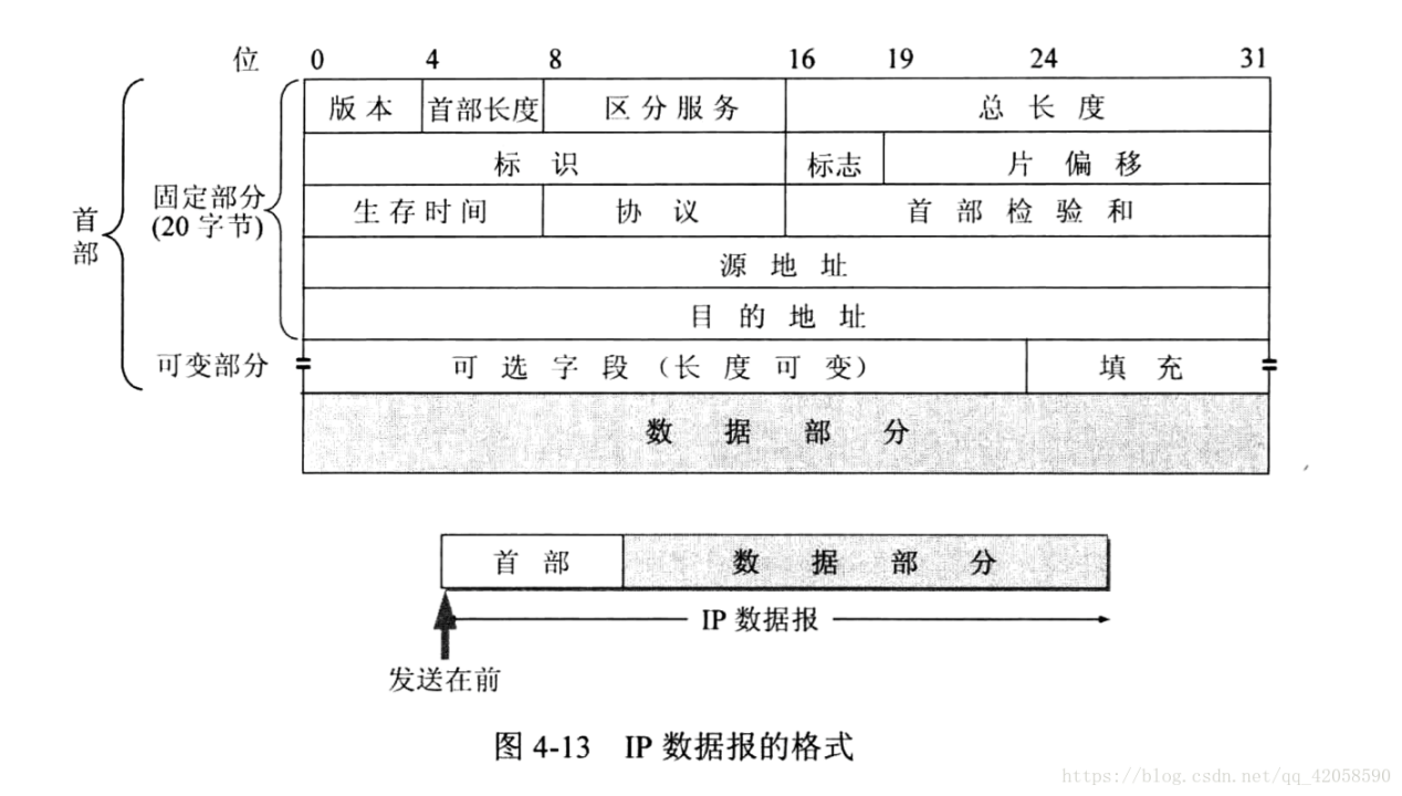 | 首部校验和 | 占据2个字节,只对首部进行校验,因为数据部分由上层来完成校验 |