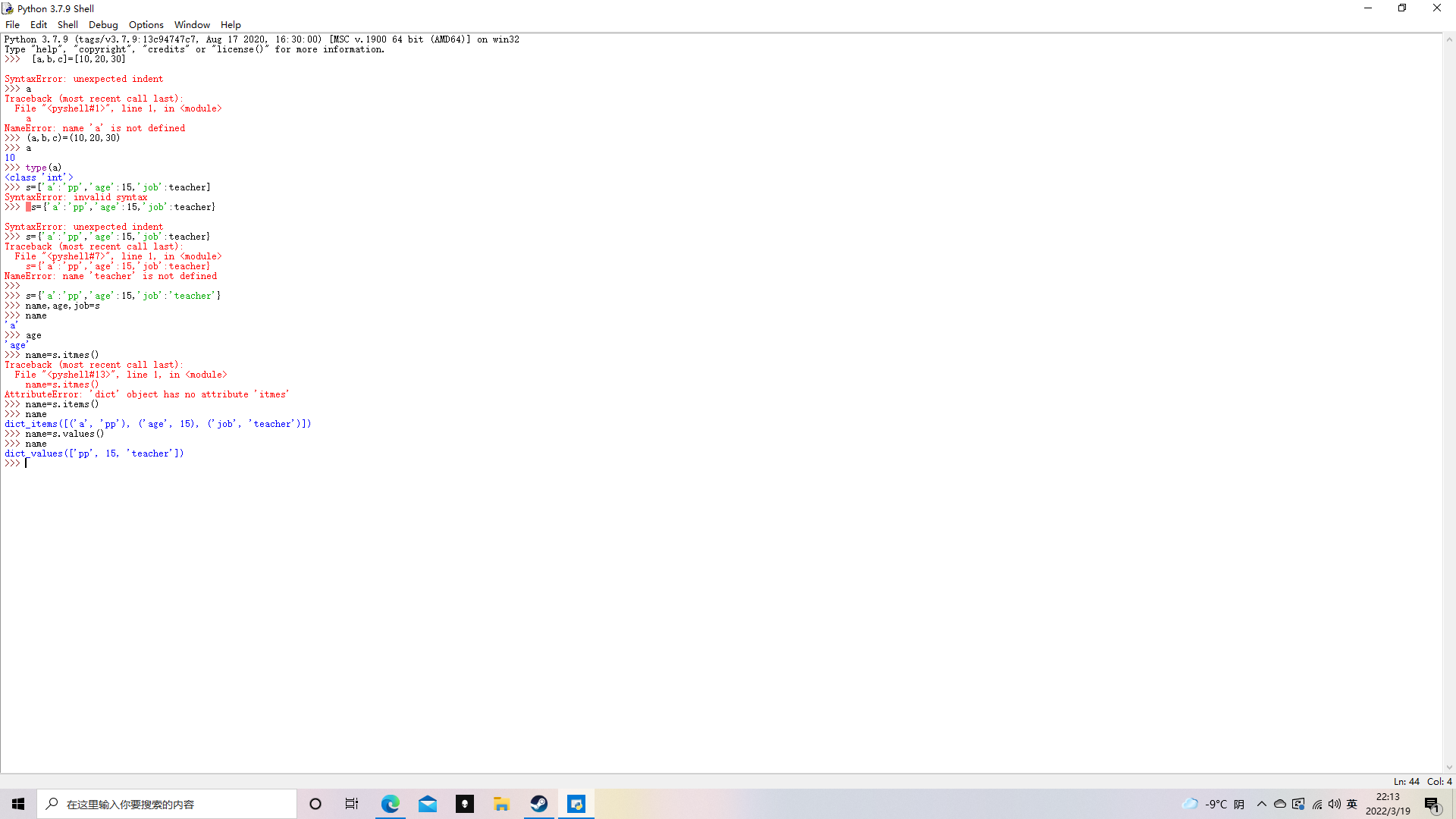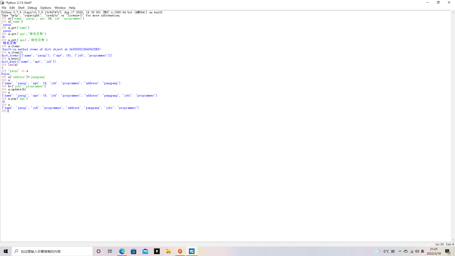 这次主要学习了字典学习的相关知识以及选择分支结构,根据课程编写了下图一些代码: