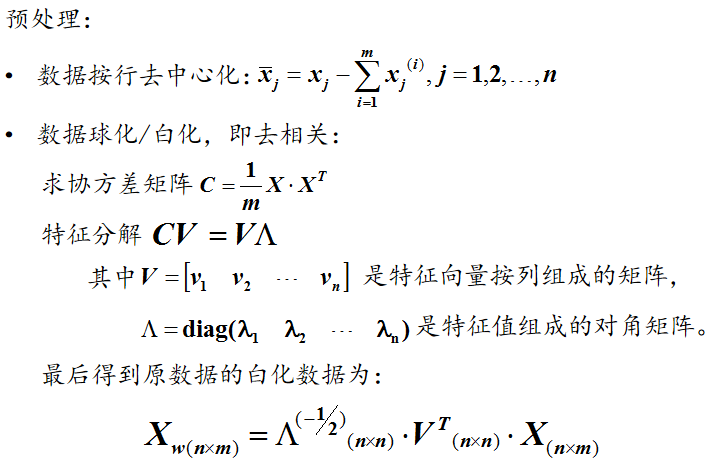其中第3步提到的白化预处理步骤如图4所示,白化也是一个值得深入学习的概念,是数据处理中一个常用的重要方法,这里不细说。