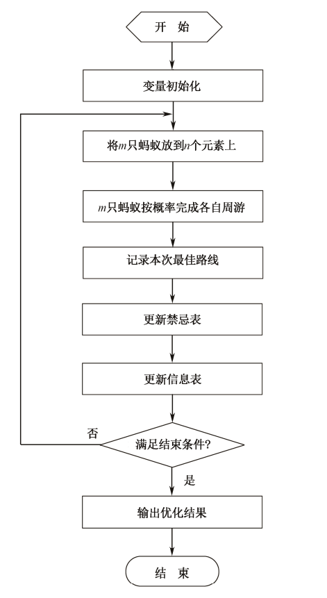 (3)蚁群算法具有较强的鲁棒性。相对于其他算法,蚁群算法对初始路线的要求不高,即蚁群算法的求解结果不依赖于初始路线的选择,而且在搜索过程中不需要进行人工的调整。此外,蚁群算法的参数较少,设置简单,因而该算法易于应用到组合优化问题的求解。