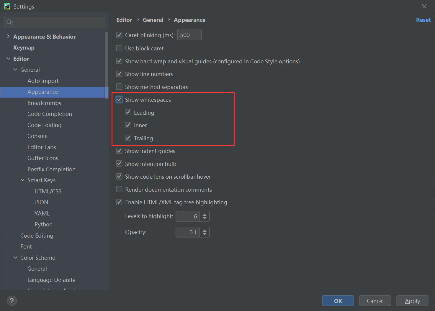 将原本pycharm中不可见的显示出,需要勾选以下三个: