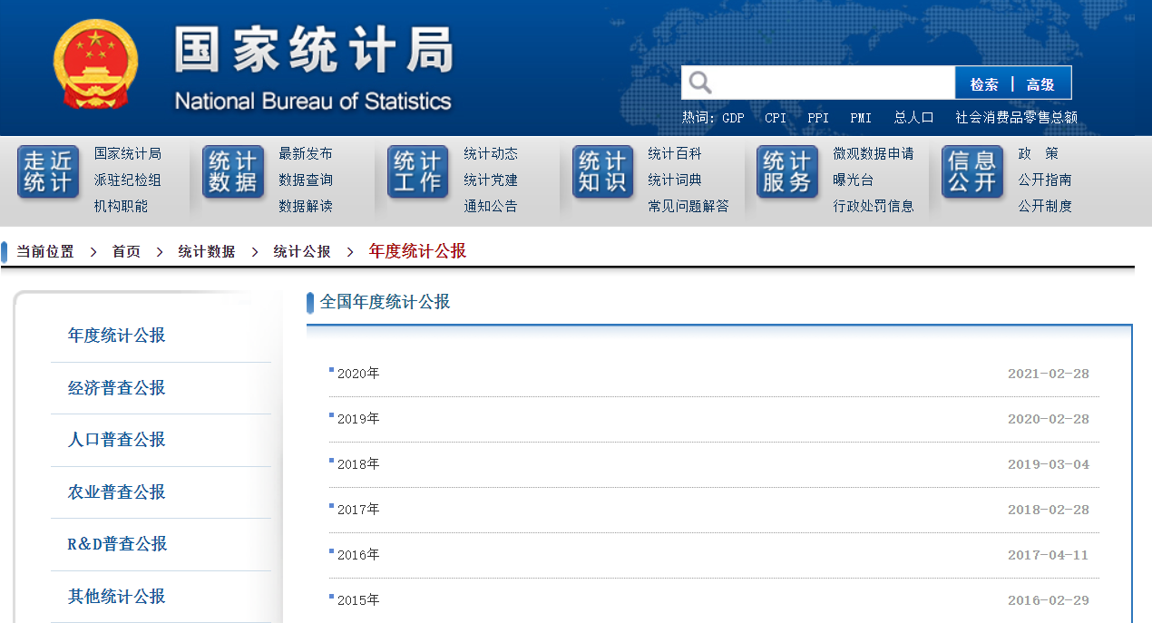 国家统计局>>年度统计公报 (stats.gov.cn)