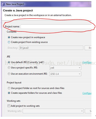 (1)选择菜单File下New选项,选择java projec,打开如下对话框