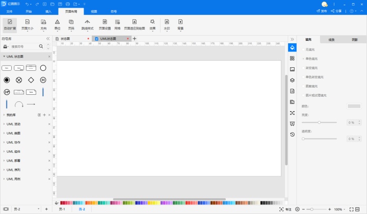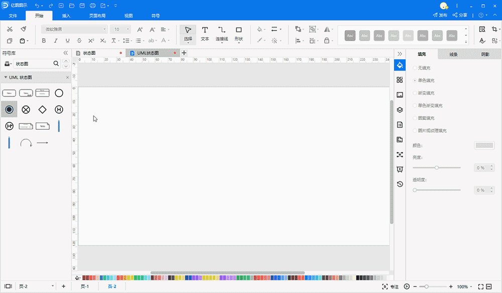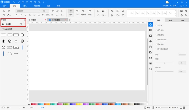 或者直接新建一张空白画布,然后在左侧符号库栏搜索关键词“状态图”调出相应图形符号;