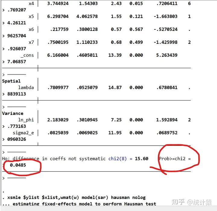 第一部分是y的空间自回归项,第二部分是关于x的回归,第三部分是关于x的空间回归,第四部分是标准误差