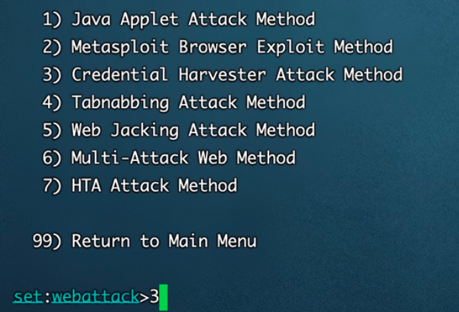 3、第三项Credential Harvester Attack Method (凭证收割机攻击方法)
