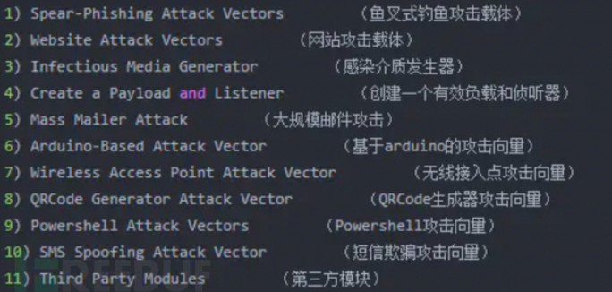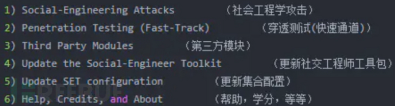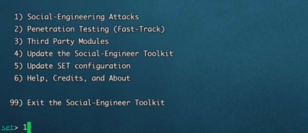1、 选择第一项Social-Engineering Attacks (社会工程学攻击)