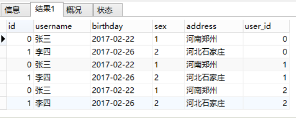 此时,将查询到的结果和原有的user表做一个笛卡尔积,结果如下: