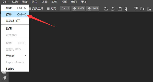 2、接着步骤和PS软件也是大同小异的,先打开要编辑的图片(文件——打开/Ctrl+O),然后就可以开始操作了;