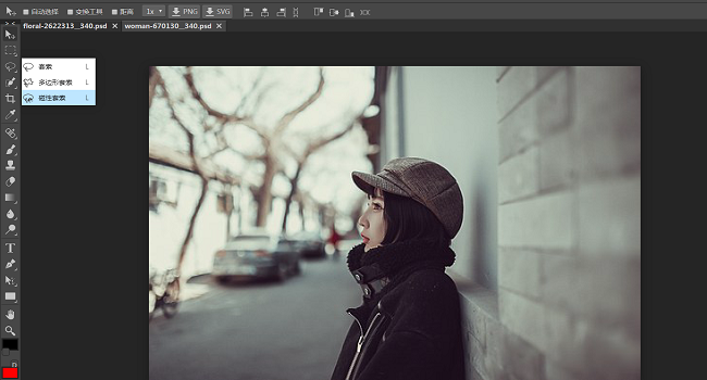 3、比如对这张图片的人像进行抠图处理,可以选择套索工具,也可以使用魔棒工具,要根据图片的色彩进行选择,比如磁性套索工具,使用起来也比较方便(PS:起始点和终点要连接到一起);