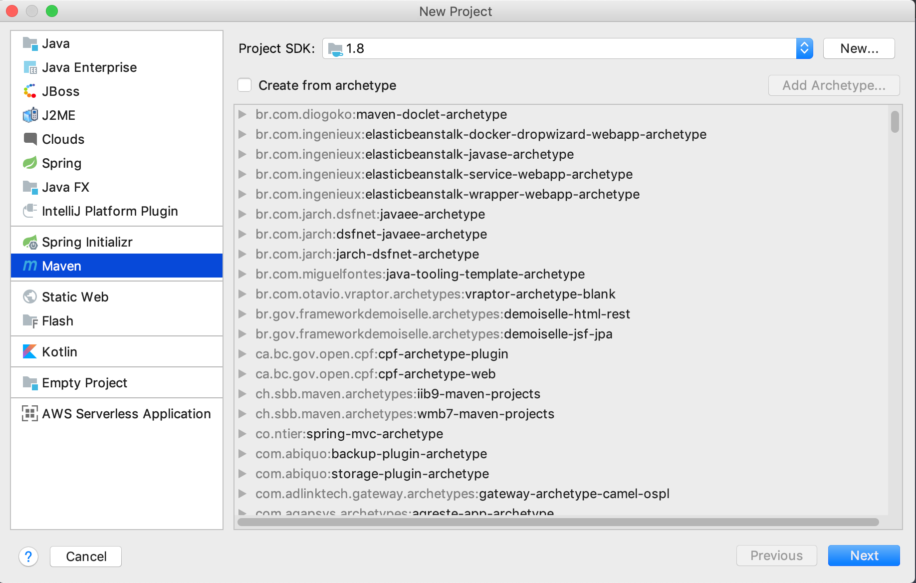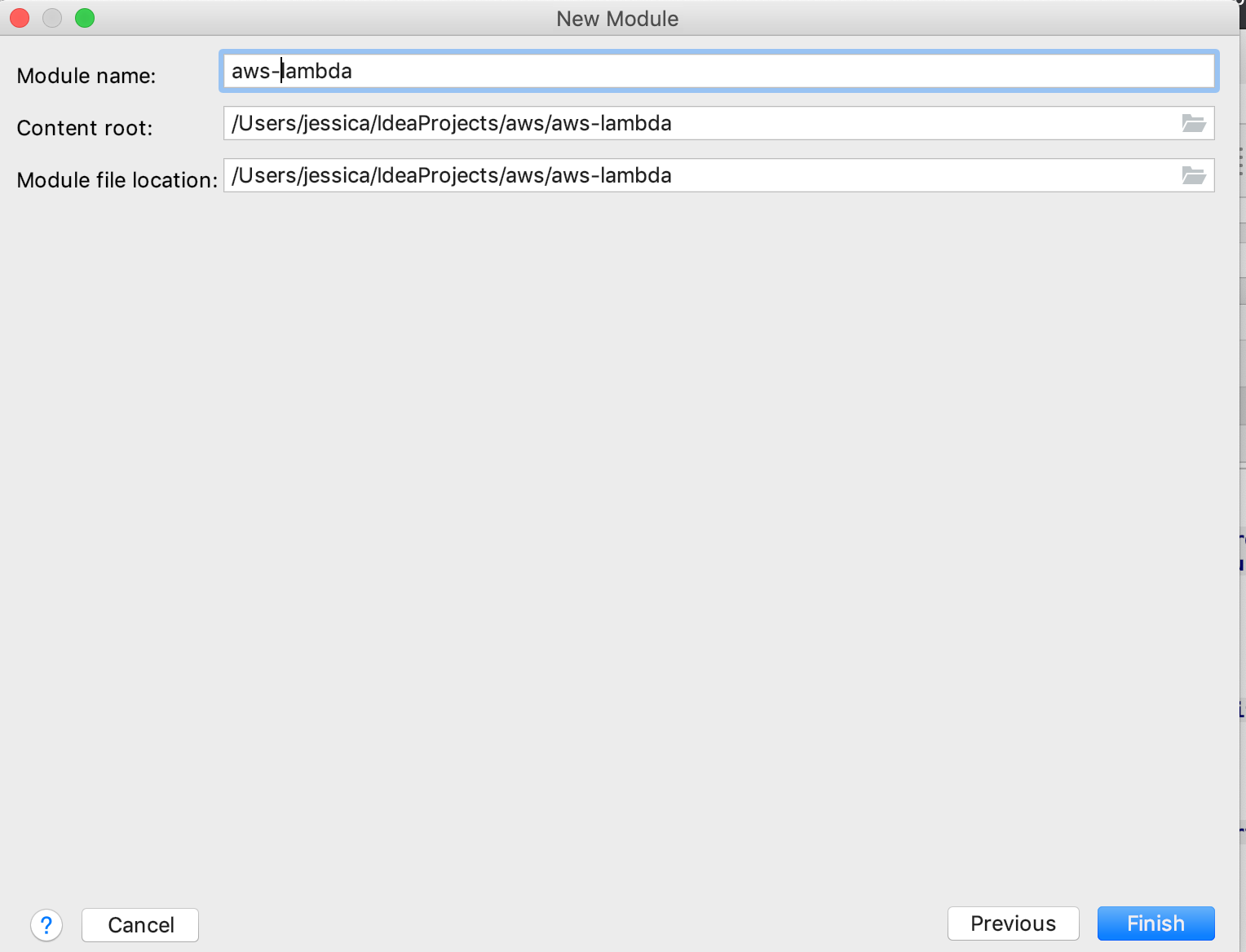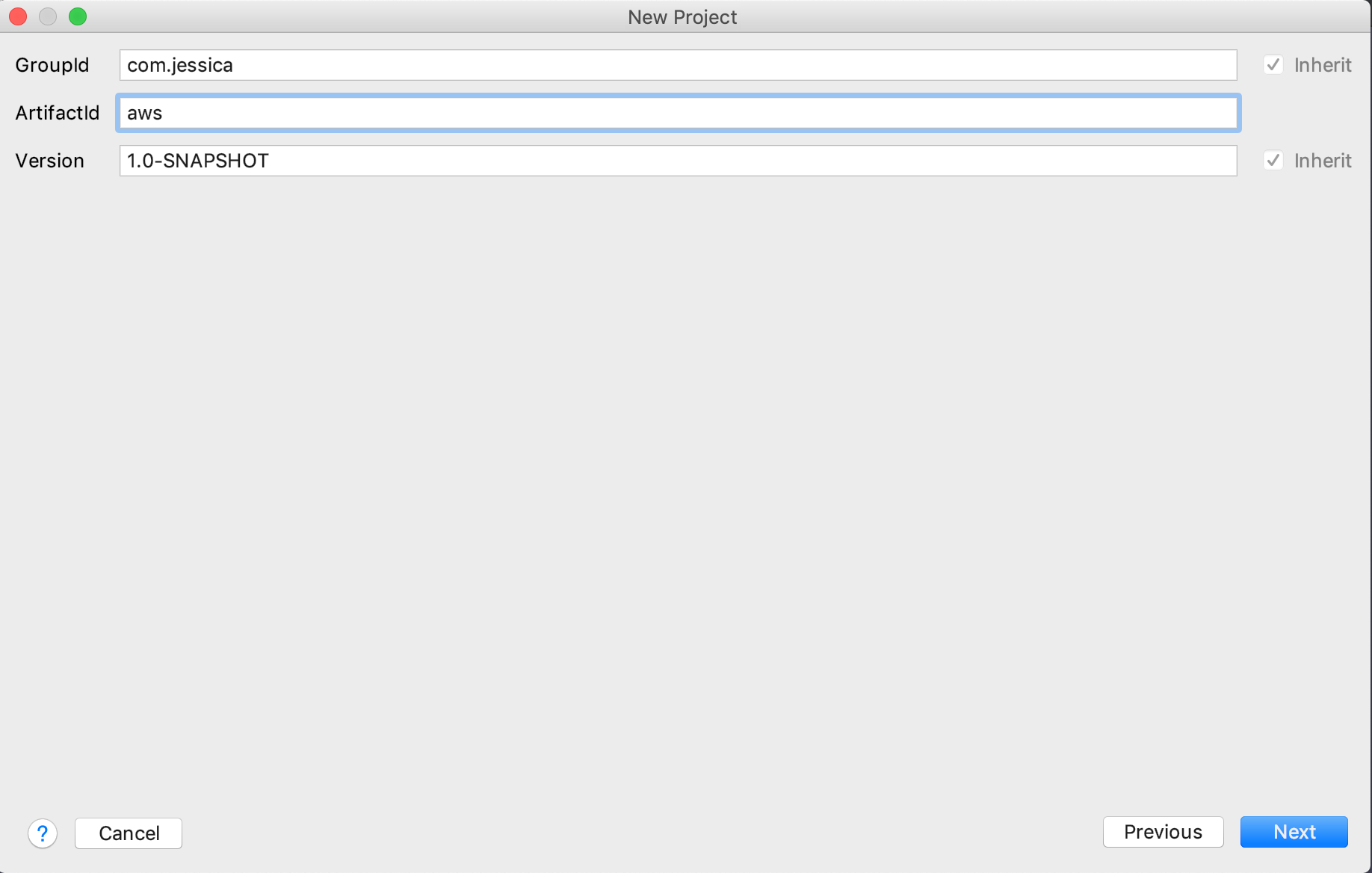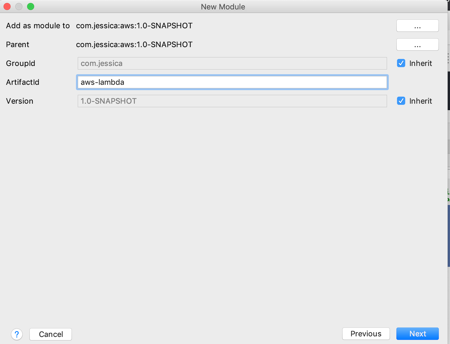 首先选中aws project,然后Intellij -> File -> New Module,在弹出的对话框中选择Maven, 使用默认配置,然后Next进入下一步配置。