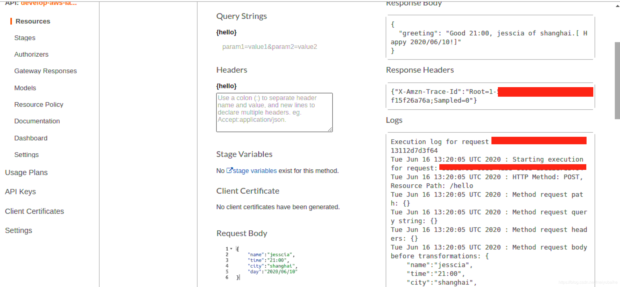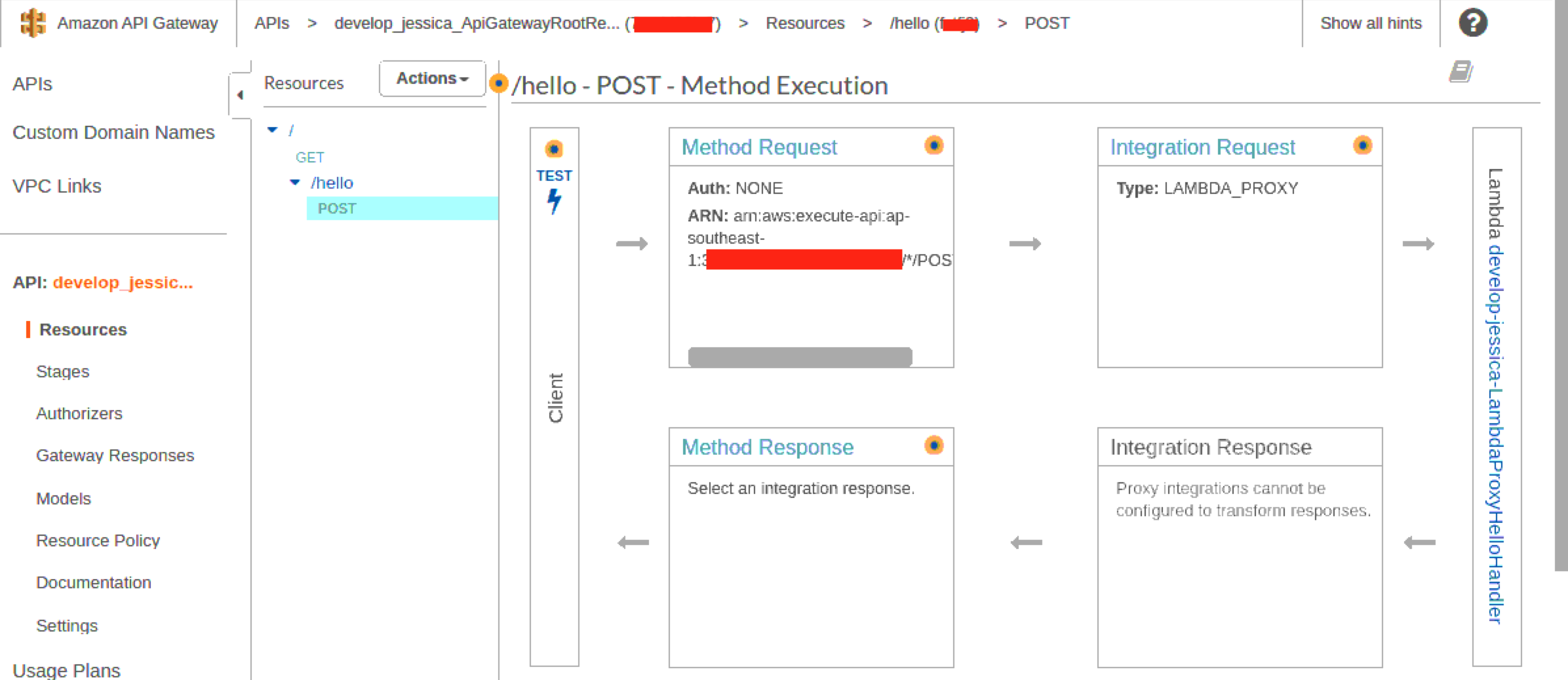 endpoints:POST - https://********.execute-api.ap-southeast-1.amazonaws.com/develop/hello