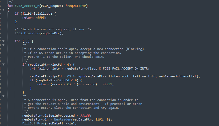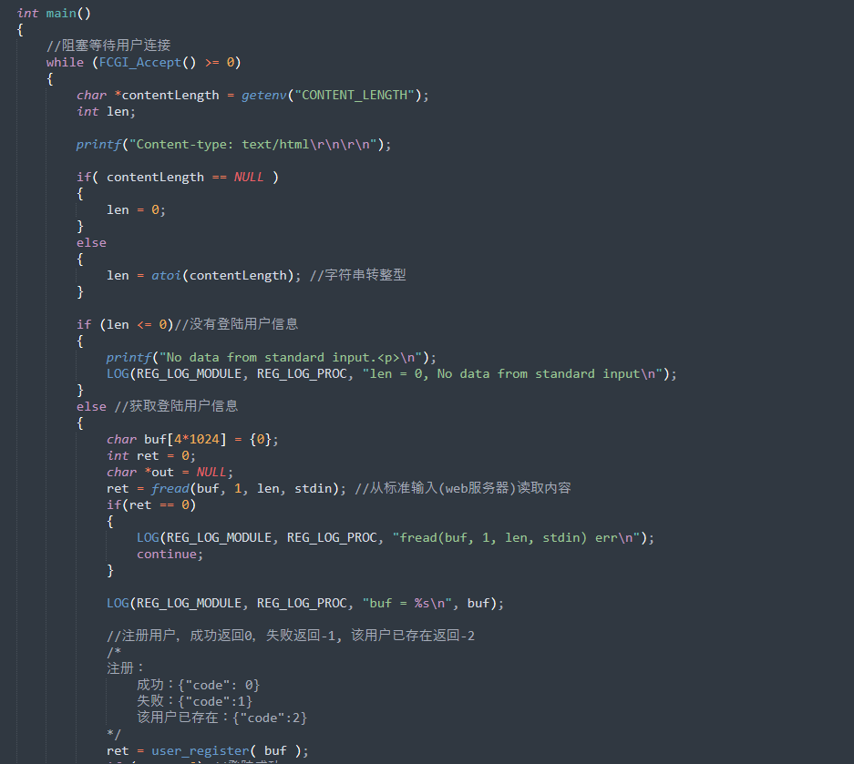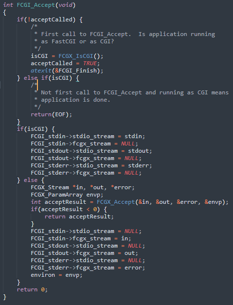 cgi 程序 通常会通过 while (FCGI_Accept() >= 0) 等待 连接进来。FCGI_Accept是 fast cgi的函数。