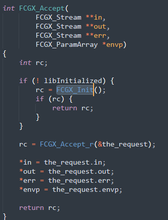 回到FCGX_Accept(), 会将FCGI_stdin->fcgx_stream = in;