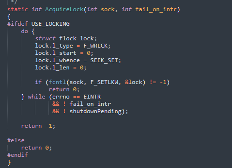 F_SETLKW:行为如同F_SETLK,除了不能获取锁时会睡眠等待外。如果在等待的过程中接收到信号,会立即返回并将errno置为EINTR。