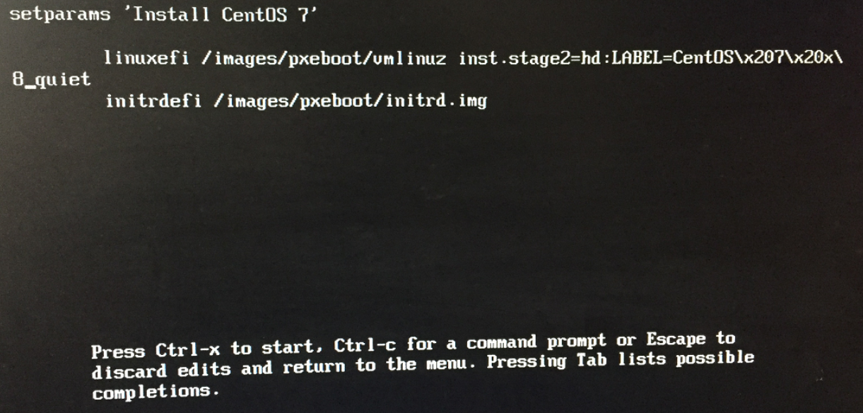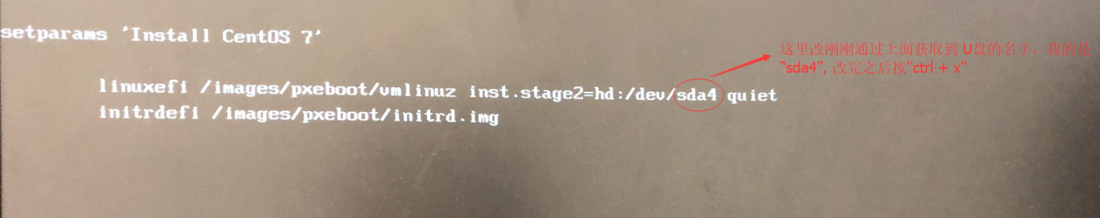 注意:此处的“LABEL=Centos\x207\x20x\86_64 quiet”指的是U盘的LABEL,