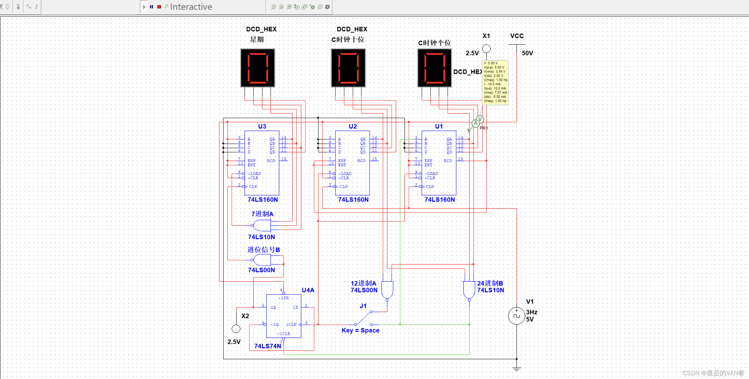 3. 怀疑是输出到数码管的导线存在问题(但电路中除数码管外其余部分运行正常,所以可能性不大),所以对输出端QA进行电压电流检测。