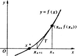 这种算法的原理很简单,我们仅仅是不断用(x,f(x))的切线来逼近方程x^2-a=0的根。根号a实际上就是x^2-a=0的一个正实根,这个函数的导数是2x。也就是说,函数上任一点(x,f(x))处的切线斜率是2x。那么,x-f(x)/(2x)就是一个比x更接近的近似值。代入 f(x)=x^2-a得到x-(x^2-a)/(2x),也就是(x+a/x)/2。