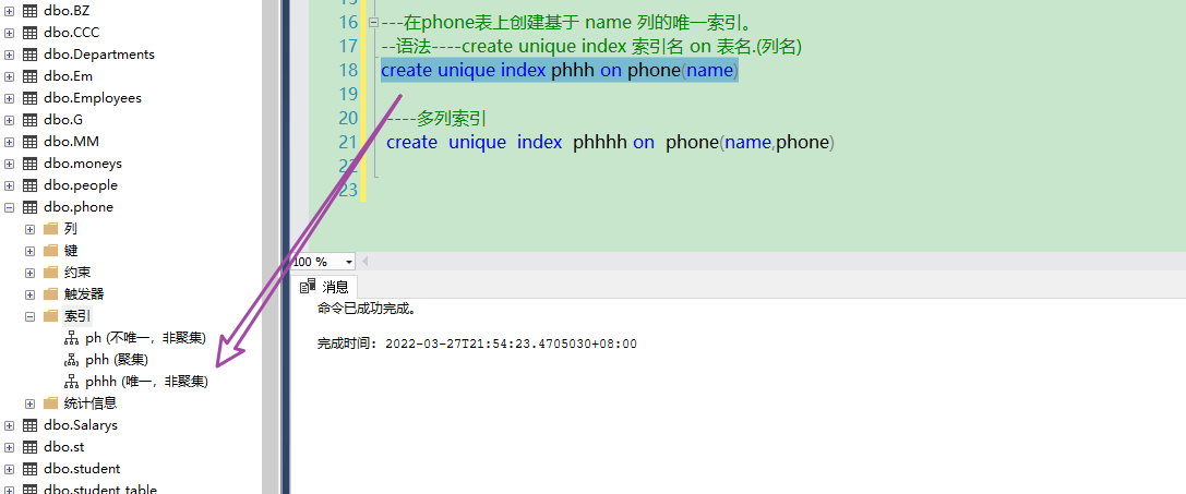 select * from phone---在phone表上创建基于 name 列的非聚集索引。