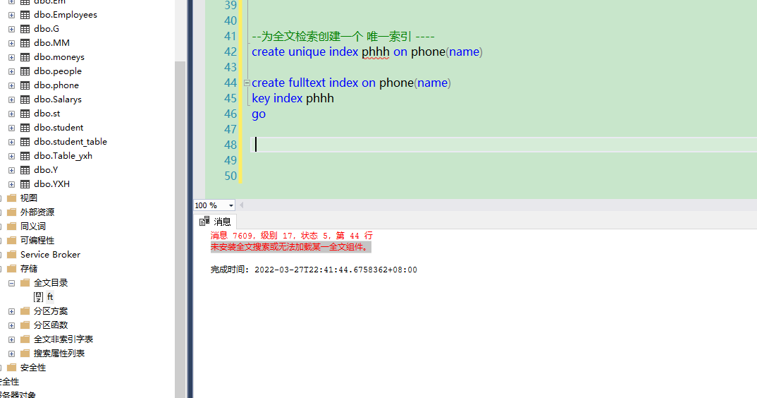create fulltext catalog ft as default ---在默认全文目录下创建全文检索----