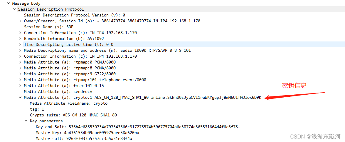 SRTP实际是RTP的一个扩展,SRTP用于RTP数据提供机密性,由RFC3711(The Secure Real-time Transport Protocol)定义,SRTP加密之前双方需要进行加密算法和秘钥的协商,可以采用sip的协商方式进行协商。主要是在SDP中增加:a=crypto字段用于存放加密类型和秘钥
