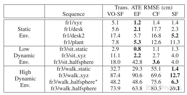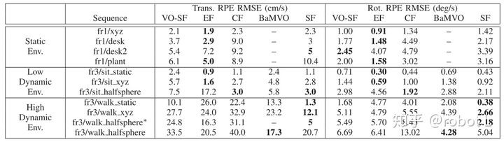 我们比较我们方法的准确性,StaticFusion(SF)和相关的SOTA方法: