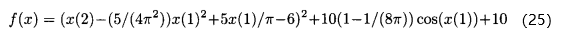 其中,x(1)和x(2)是候选解的两个分量(n=2)。函数的域是x(1)∈[-5,10],x(2)∈[0.15]。首先要决定用哪些采样点。我们在这里任意选定25个均匀分布于二维搜索域的采样点(M=25)。下面用MATLAB中的fmincon函数关于和