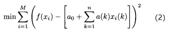 的第k个元素。欲求出让(2)式最小的(n+1)个参数a(k),k属于[0,n],可以用迭代最小二乘法,当得到更多适应度值(M=1,2,以此类推)时更新(2)式的解所需的计算量很少。