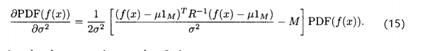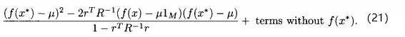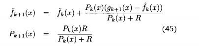 (45)式显示,每当评价x的适应度时,我们会基于前面的估计,不确定性以及最近的适应度函数评价的结果g(x)来修正我们的估计,由(45)式可知
