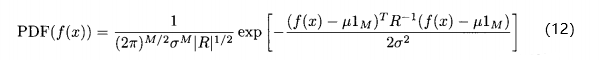 的值。已知f(x)的随机性质,(12)式给出f(x)的概率密度函数与得到具体的f(x)的可能性成正比。因此,为找到f(x)的参数形式与f(x)的测量值之间的最好的拟合,我们要找出让(12)式的PDF(f(x))最大的