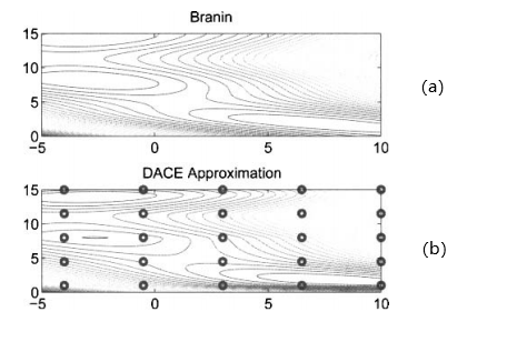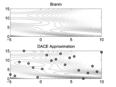 例1,我们用DACE估计二维Branin基准函数