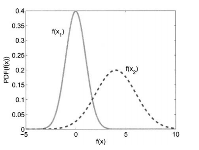 当适应度函数评价带有噪声时,就无法确定哪一个个最好。在进化算法的执行过程中因为不知道真实的适应度函数(假设它是有噪声适应度函数的均值),所以也不知道有噪声适应度函数的概率密度函数。不过我们可能直到真实的适应度函数的概率密度函数。这类似于上图,但是要反过来,将真实的适应度函数看成是均值等于有噪声评价的适应度函数的随机变量,而不是将有噪声适应度函数看成均值等于真实的适应度函数的随机变量。