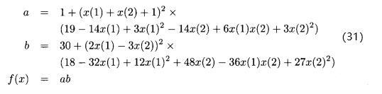 其中,x(1)和x(2)的域为[-2,2]。这个函数在它的最小值附近很平坦,在(1)=0和