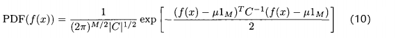 的M个适应度;(9)中M个适应度函数的高斯概率密度哈数为