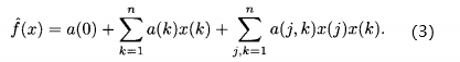 这是一个二次模型,有(n^2+n+1)个参数。此模型关于参数a(k)和a(j,k)仍然是线性的,可以用迭代最小二乘法来求解,只要领会了多项式建模的思想,就可以尝试不同形式的模型,比如: