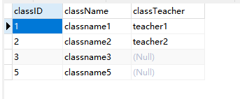 INSERT INTO `class` VALUES ('2', 'classname2', 'teacher2');