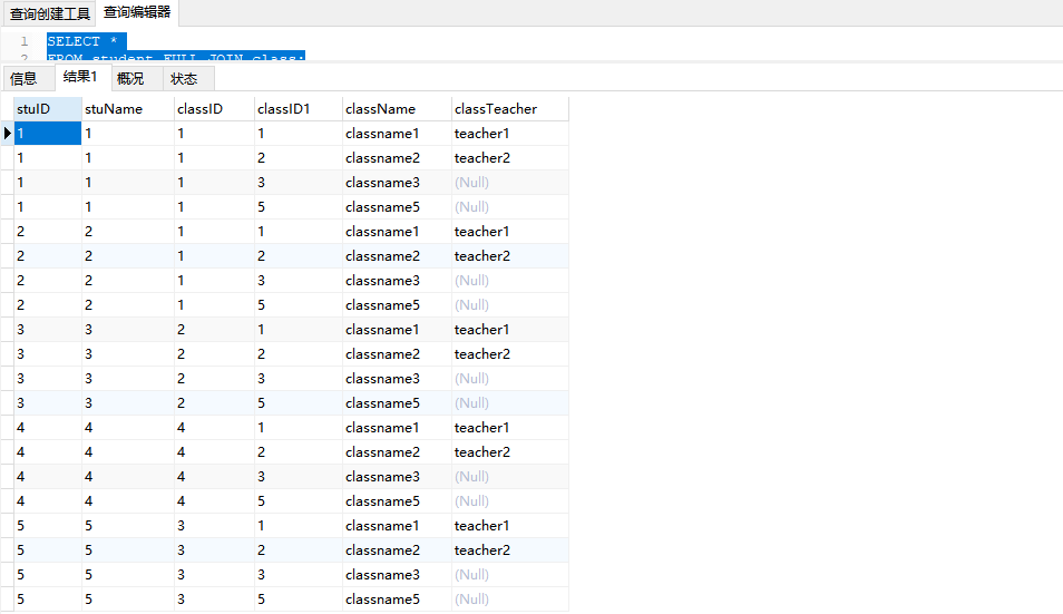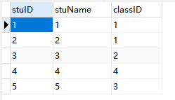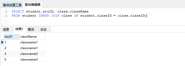 class表 和 student表 进行 基于classID 属性的等值连接,SQL 语句如下。