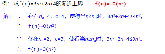 1)定义:如果存在两个正的常数c和n0,对于任意n≥n0,都有f(n)≤c×g(n),则记为f(n)=O(g(n)),即g(n)为f(n)的上界。